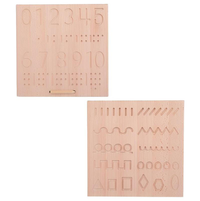 Cette planche de traçage en bois est conçue pour accompagner les enfants dans l’apprentissage des chiffres et des formes graphiques. À l’aide d’un stylet en bois, l’enfant suit les rainures et s’exerce à tracer les chiffres de 0 à 9, mais aussi des lignes et formes de préparation à l’écriture à l'arrière de la planche.